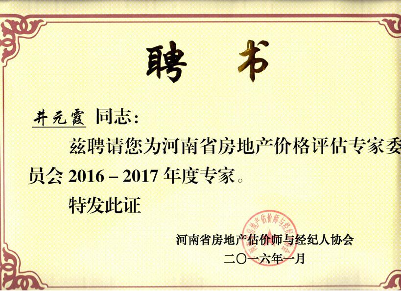 | 河南省房地產(chǎn)業(yè)協(xié)會估價經(jīng)紀專 |